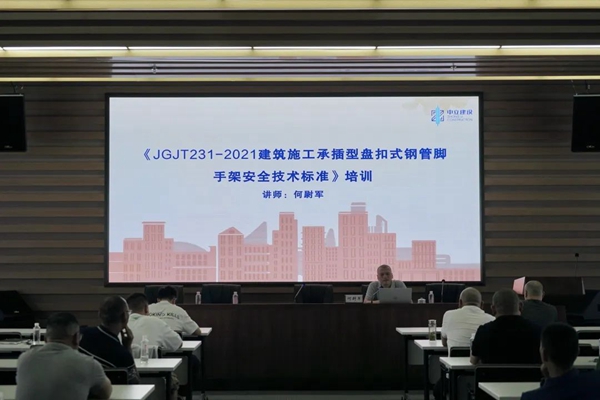 麗水市建筑工程施工管理中心何尉軍同志就《JGJT231-2021建筑施工承插型盤(pán)扣式鋼管腳手架安全技術(shù)標(biāo)準(zhǔn)》進(jìn)行培訓(xùn)。